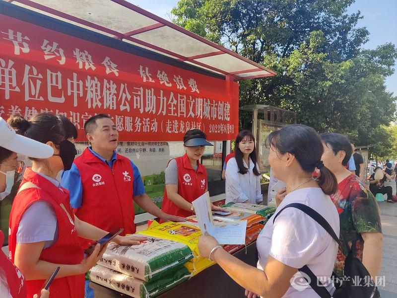 食为政首,粮安天下。为弘扬中华民族勤俭节约传统美德,深入开展爱粮节粮宣传教育,助力巴中全国文明城市创建。8月9日,四川巴中国家粮食和物资储备库有限公司走进巴州区江北街道龙泉社区开展“节约粮食·杜绝浪费”志愿服务活动。