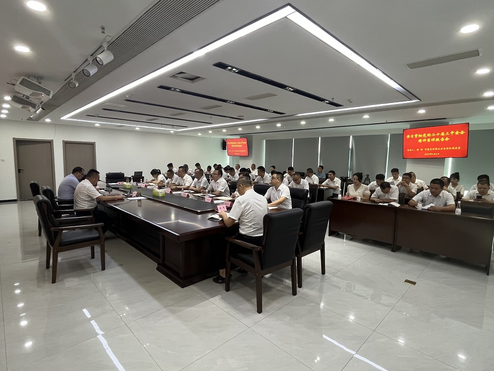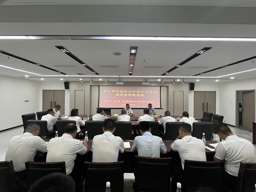 9月4日, 市产业发展集团召开学习贯彻党的二十届三中全会精神宣讲报告会,全会宣讲分团成员从“深刻把握党的二十届三中全会的重大意义”“深刻把握进一步全面深化改革的重大举措”“深刻把握全会对国资国企改革发展实质要义”等六个方面对党的二十届三中全会精神进行系统阐述。