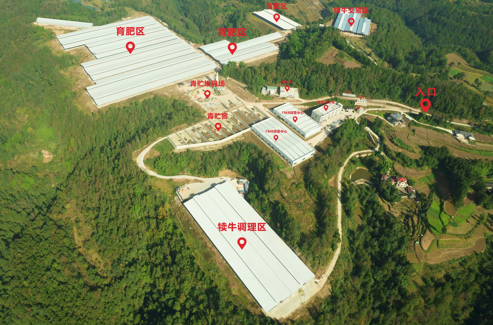 巴州区鼎山镇首市村巴山肉牛标准化育肥场(以下简称“首市村育肥场”)项目,坐落于四川省巴中市巴州区鼎山镇首市村东侧约500米处,距离巴中市城区40余公里。该项目占地面积512.52亩,总建筑面积为98250㎡。其中,牛舍面积80469㎡,生产综合用房面积2271.56㎡,设备用房及附属设施面积1009.16㎡,TMR中心和干草棚面积3100㎡,饲料精加工车间面积1965㎡,青贮窖面积6436㎡。建成后可存栏育肥牛约1万头,届时将成为西南地区规模化、标准化、现代化的肉牛育肥场典范。