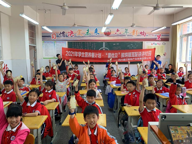 为持续做好巴中农特产品宣传、推广,切实提高巴中农特品牌知晓度和影响力。6月3日至4日,四川通江银耳产业发展有限公司先后前往巴中职业技术学院、巴州区七小和恩阳区第四小学开展2021年学生营养餐计划·“菌优贝”鲜炖银耳配送进校园活动。