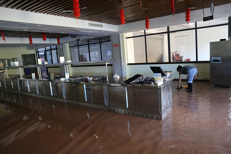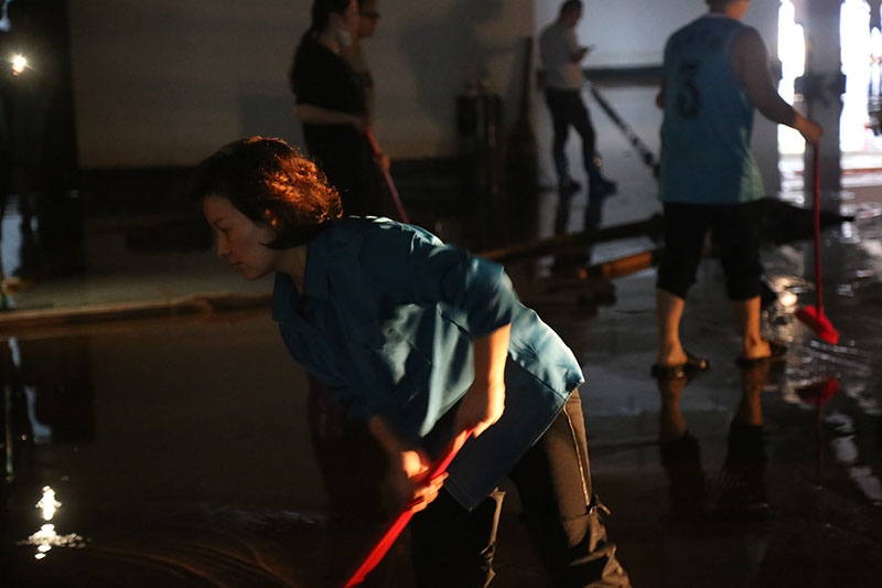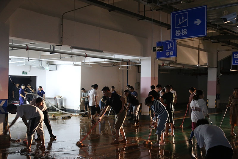 在公司上下团结一心,众志成城,齐心协力的努力下,清理淤泥约700余方,29日凌晨2时受灾严重的地下车库、食堂排水清淤工作基本结束,受灾区域也冲洗清扫一新,30日已正常投入使用。