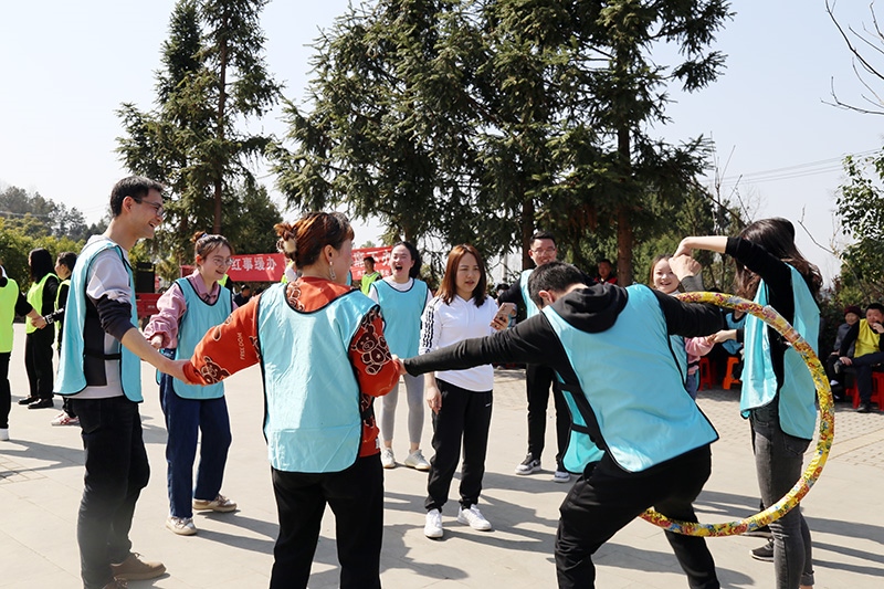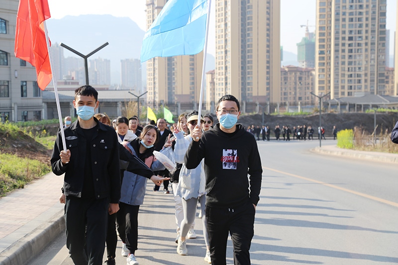 上午8点,徒步活动拉开帷幕,公司近150名职工组成四列长队向前进发,大家昂首阔步、你追我赶,一路欢声笑语、气氛热烈。上午10点,一到达目的地,紧张刺激的游戏活动就开始了。所有职工被分成了红、黄、蓝、绿四个参赛队伍,“多人抱团”、“突出重围”、“传递呼啦圈”三个游戏依次进行。游戏比赛过程中,大家热情高涨、积极参与、勇争先锋,欢笑声、叫好声此起彼伏,每个人脸上都荡漾着春风、洋溢着激情。