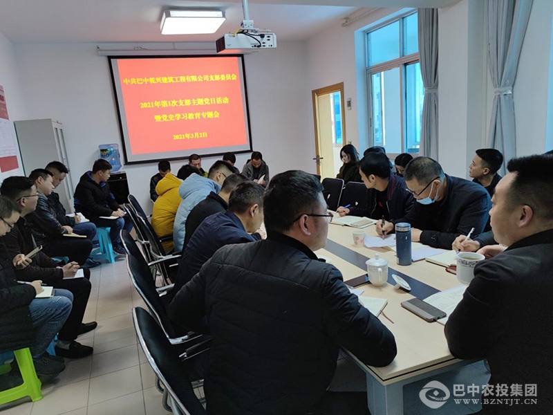 2021年3月2日,乾兴公司召开党史学习教育动员大会,认真学习贯彻习近平总书记在党史学习教育动员大会上的重要讲话精神。支部书记胡彬对常态化、制度化、规范化开展党史学习教育工作