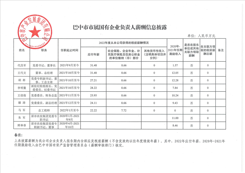 2022年巴中市国有企业工资分配情况信息披露 - 产业集团.xlsx