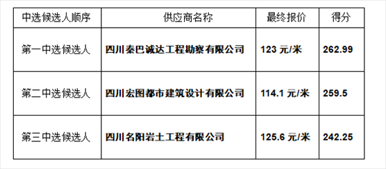 通江县青峪猪种养循环现代生态农业示范园建设项目补充勘察服务采购项目中标候选人公示